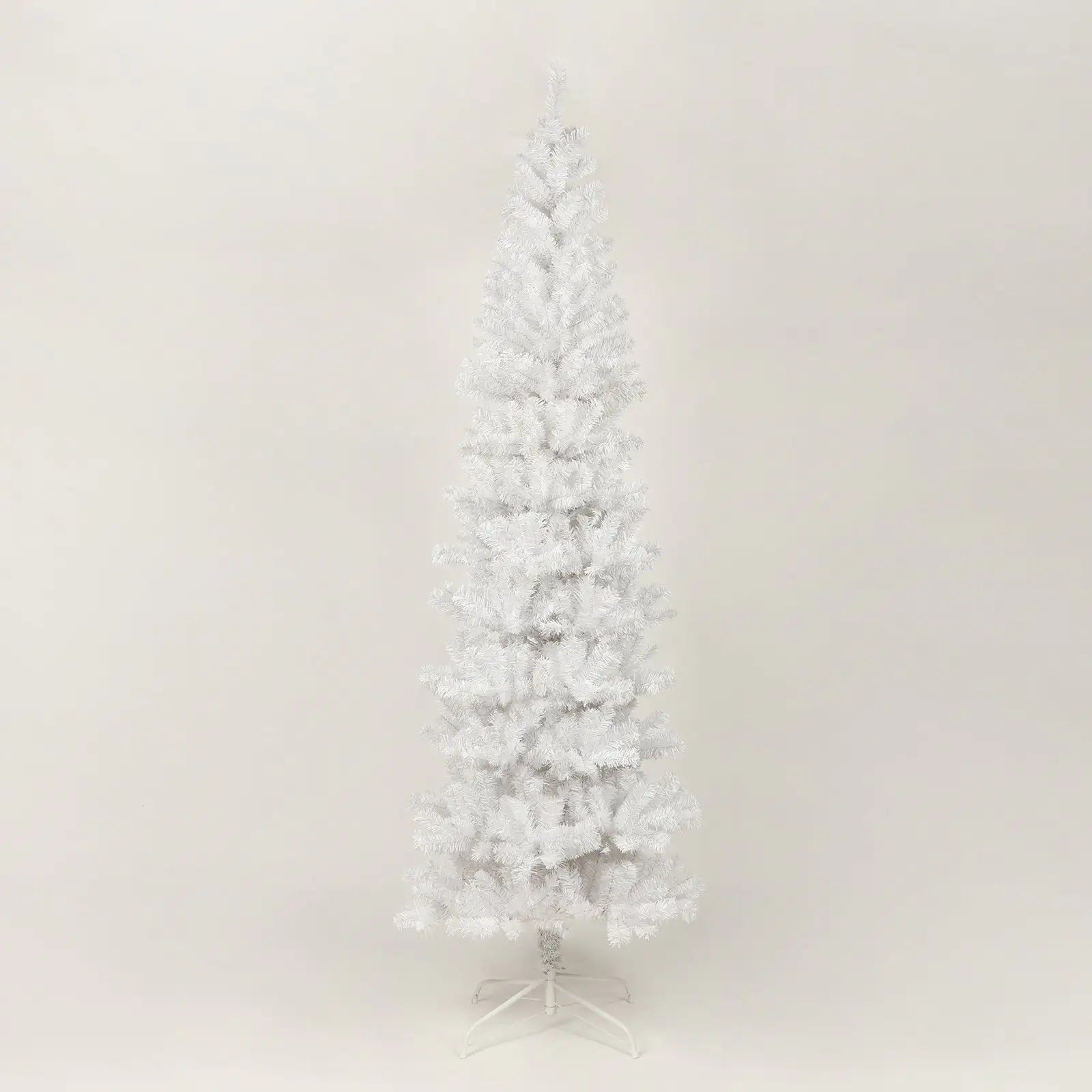 7.5 Feet White Slender Faux Christmas Tree Including Foldable Metal Stands