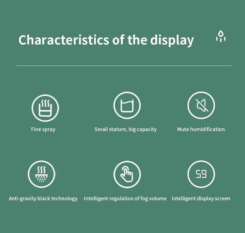 Lighting mode, soft ambient light, enjoy the humidification and watch the water fall back. Sleep mode: turn off the light, continue to spray humidification, you can hear the sound of water running. Sleep comfortably with you.