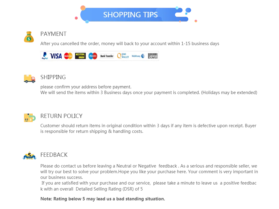 Color: black, orange, pink, green, blue