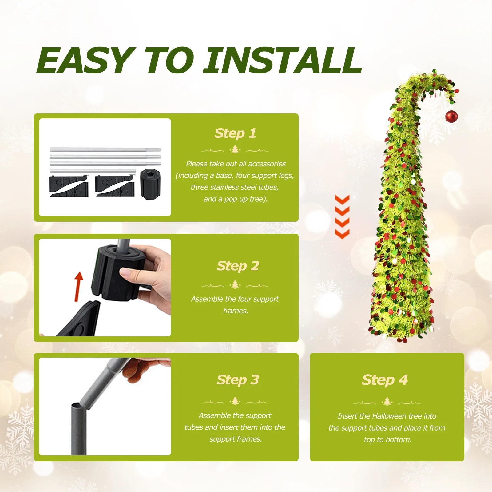 Scalable Christmas Tree With 1.5 Meter Green Leaves, Foldable Woolen Strips, Tree, Spiral Tree, Christmas Decoration Ornament