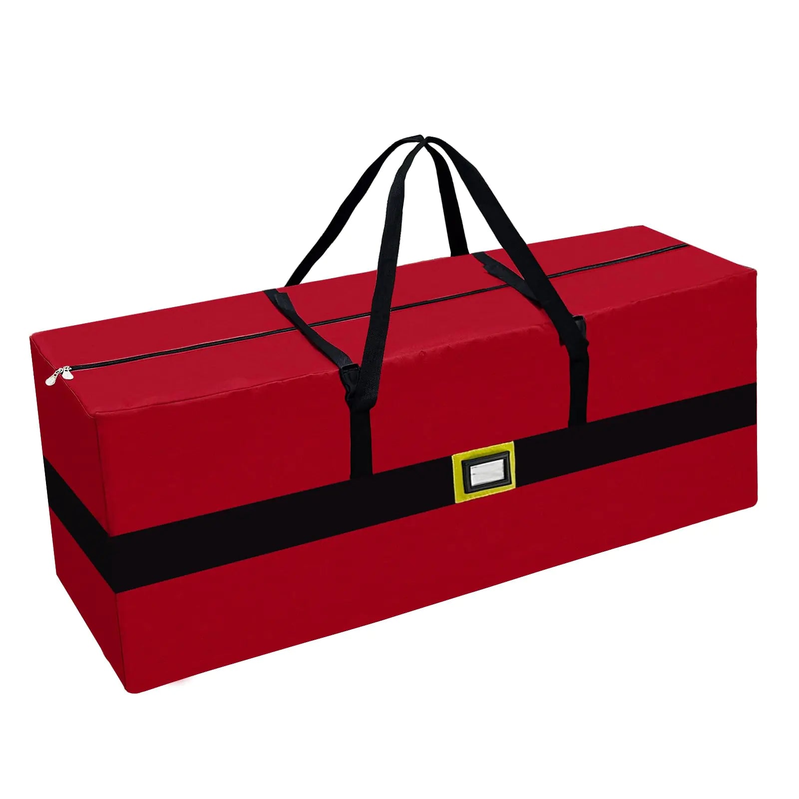 [Color Block Design: The red and black color-matching design of Christmas tree bags storage 7.5 adds a touch of elegance to your holiday storage solution. It not only keeps your tree safe but also enhances the visual appeal of your storage space. High-quality Construction: The Christmas tree storage bag 7.5 ft is made with 600D Oxford material known for its strength and durability. The reinforced handle ensures easy transportation and the stylish double zipper provides added convenience and security. Large Size: With a generous size of 50” X 20” X 15” Christmas tree bags are specifically designed to fit artificial trees up to 7.5 feet tall. Say goodbye to struggling with ill-fitting bags and enjoy hassle-free storage. Effortless Storage: The Christmas tree box storage ensures that your artificial tree remains safe from dust moisture and other potential damages during storage. The dual zipper allows for easy access to your tree Keep your tree intact and protected until the next holiday season. Additional Features: To further enhance convenience Christmas storage includes a transparent pocket. This pocket allows you to label and identify the contents of the bag easily. Efficient organization and stress-free retrieval of your tree become a reality with our thoughtfully designed storage solution.]
