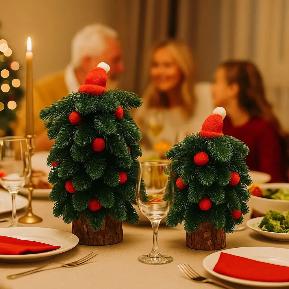 Tower Shaped Christmas Tree Ornaments Lifelike Reusable Mini Christmas Tree Wooden Base Christmas Decorations