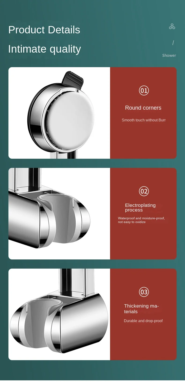Unique Horizontal Setting,Suction Cup Handheld Shower Head Holder ,Large Shower Head Supports, Relocatable,Wall Mounted